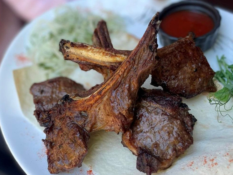 Лосось гриль на мангале с соусом наршараб