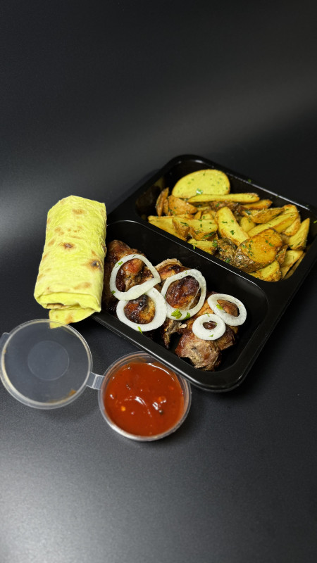 Ланч-бокс с картошкой с картошкой фри + свинина,