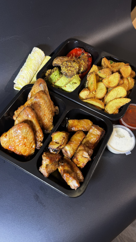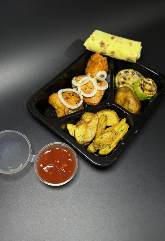 Ланч-бокс с картошкой картошка по-селянски + куриное филе,