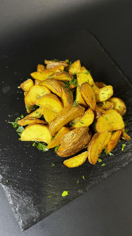 картошка по-селянски + бургер с куриной котлетой —